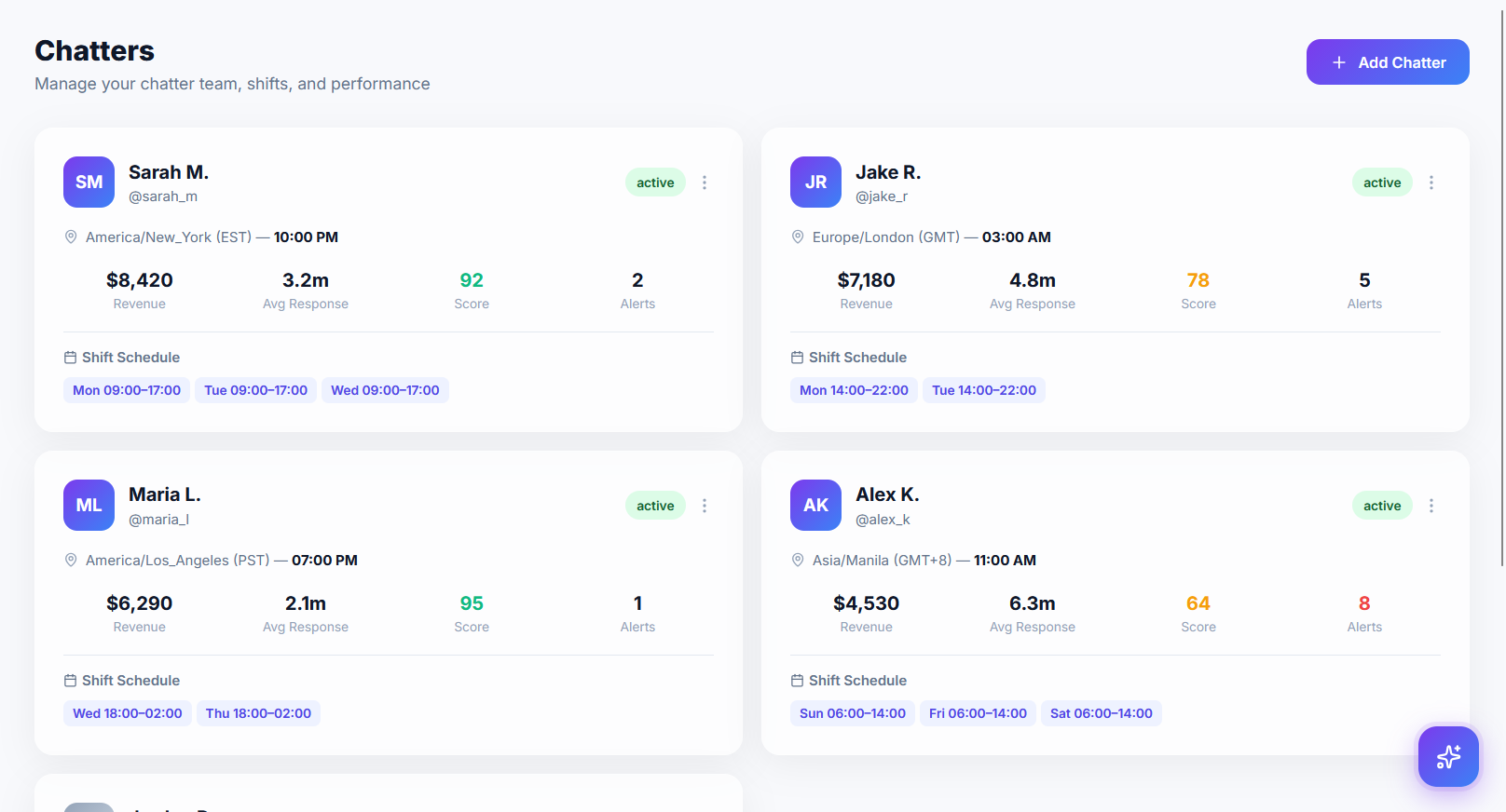 Hold chatters accountable with performance scores, alerts, and leaderboards.
