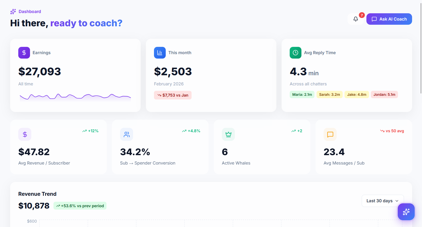 Track and maximize earnings per subscriber with AI-driven coaching insights.